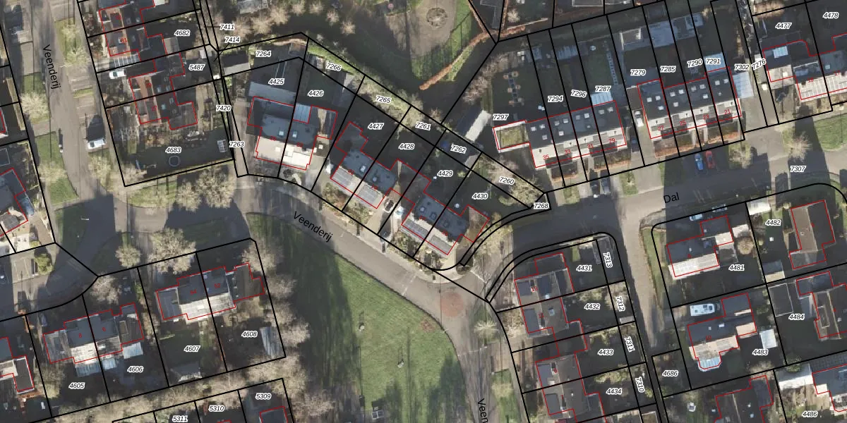 Veenderij 17 is gelegen op kadastraal perceel LEE01H4429. Deze kadastrale aanduiding is uniek en wordt gebruikt door het Kadaster om eigendomsrechten en andere zakelijke rechten vast te leggen. Het perceel maakt onderdeel uit van de kadastrale gemeente Leek.