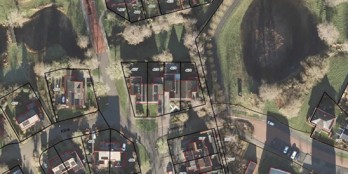 Veenderij 49 is gelegen op kadastraal perceel LEE01H4679. Deze kadastrale aanduiding is uniek en wordt gebruikt door het Kadaster om eigendomsrechten en andere zakelijke rechten vast te leggen. Het perceel maakt onderdeel uit van de kadastrale gemeente Leek.