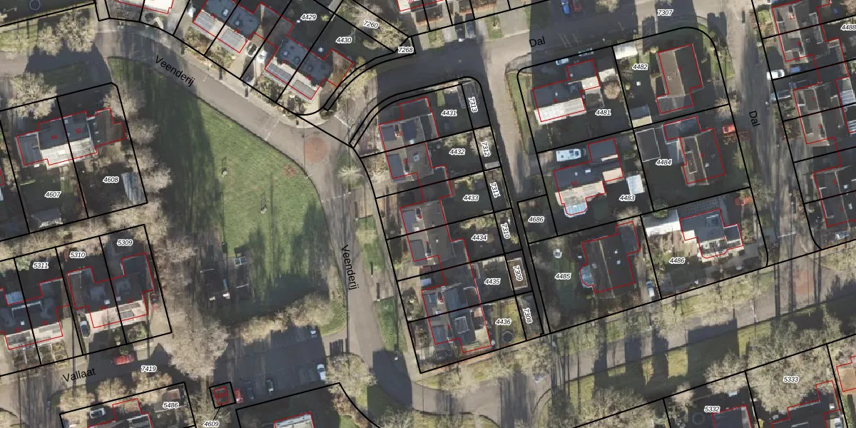Veenderij 9 is gelegen op kadastraal perceel LEE01H4433. Deze kadastrale aanduiding is uniek en wordt gebruikt door het Kadaster om eigendomsrechten en andere zakelijke rechten vast te leggen. Het perceel maakt onderdeel uit van de kadastrale gemeente Leek.