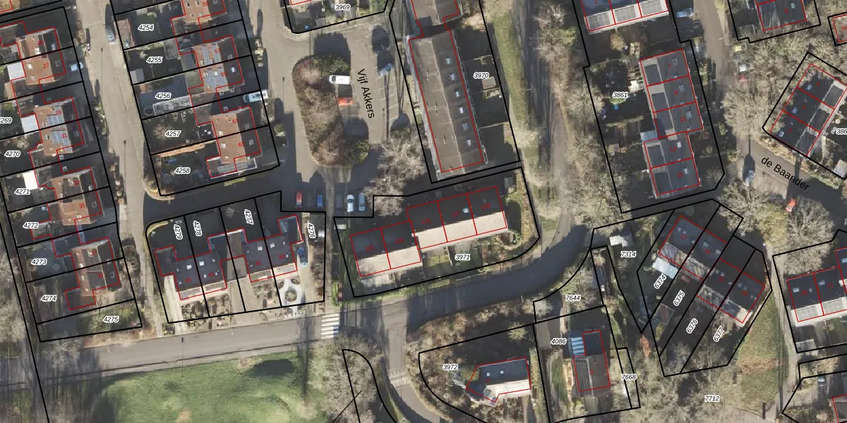 Het perceel waarop Vijf Akkers 125 staat heeft een oppervlakte van 927 m². Dit is een groot perceel. De perceeloppervlakte wordt geregistreerd door het Kadaster. Gedetailleerde informatie over de maten van dit perceel kunt u vinden in het rapport Kadastrale kaart met maatvoering van Vijf Akkers 125.
