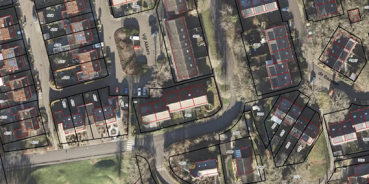 Het perceel waarop Vijf Akkers 127 staat heeft een oppervlakte van 927 m². Dit is een groot perceel. De perceeloppervlakte wordt geregistreerd door het Kadaster. Gedetailleerde informatie over de maten van dit perceel kunt u vinden in het rapport Kadastrale kaart met maatvoering van Vijf Akkers 127.