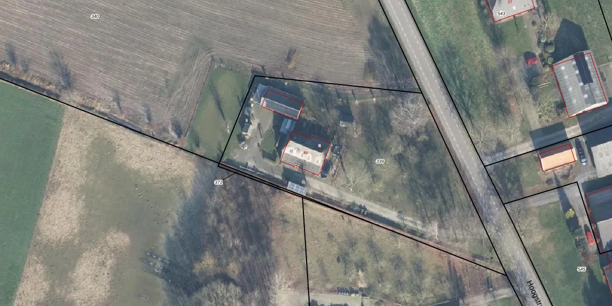 Hoogstraat 44 is gelegen op kadastraal perceel SDR00Q339. Deze kadastrale aanduiding is uniek en wordt gebruikt door het Kadaster om eigendomsrechten en andere zakelijke rechten vast te leggen. Het perceel maakt onderdeel uit van de kadastrale gemeente Steenderen.
