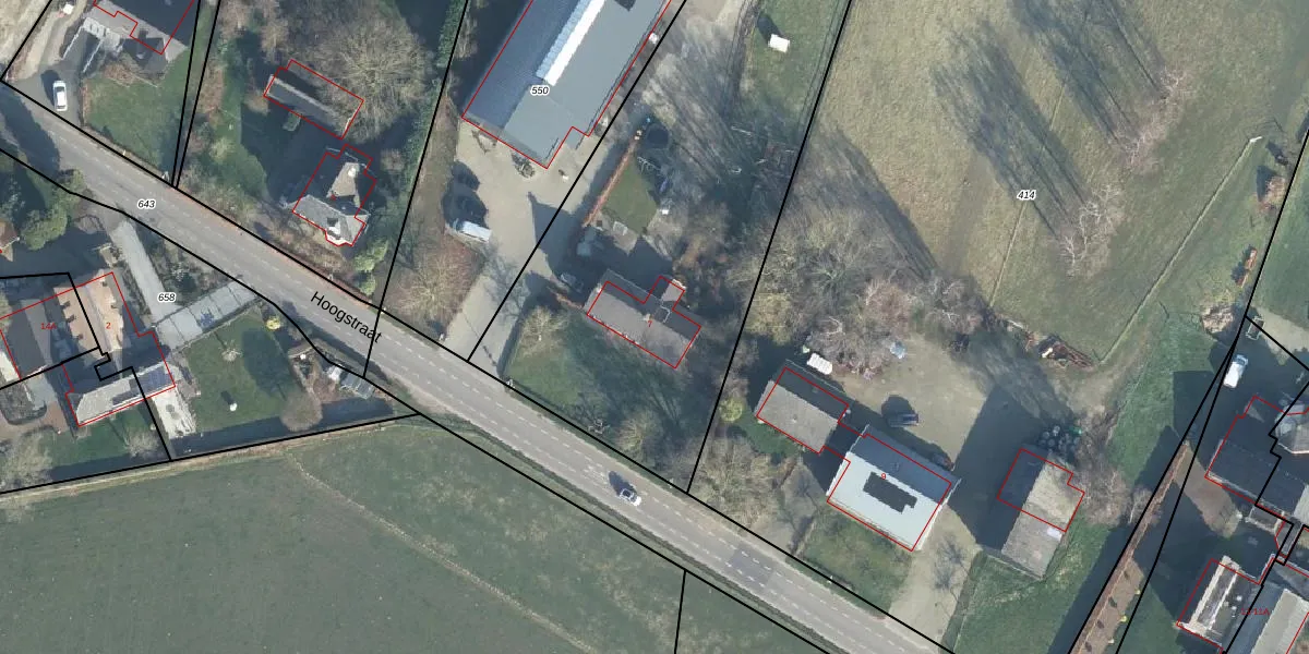 Het perceel waarop Hoogstraat 7 staat heeft een oppervlakte van 6183 m². Dit is een zeer groot perceel. De perceeloppervlakte wordt geregistreerd door het Kadaster. Gedetailleerde informatie over de maten van dit perceel kunt u vinden in het rapport Kadastrale kaart met maatvoering van Hoogstraat 7.