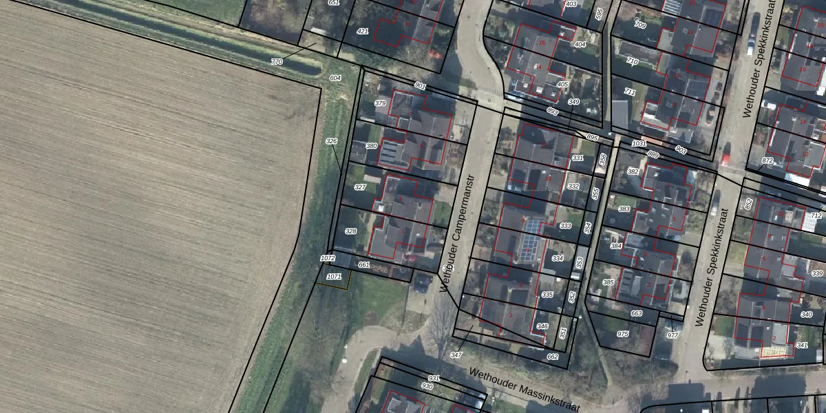 Gebruik de zoekbalk of klik op een perceel voor informatie over de adressen binnen dit perceel.