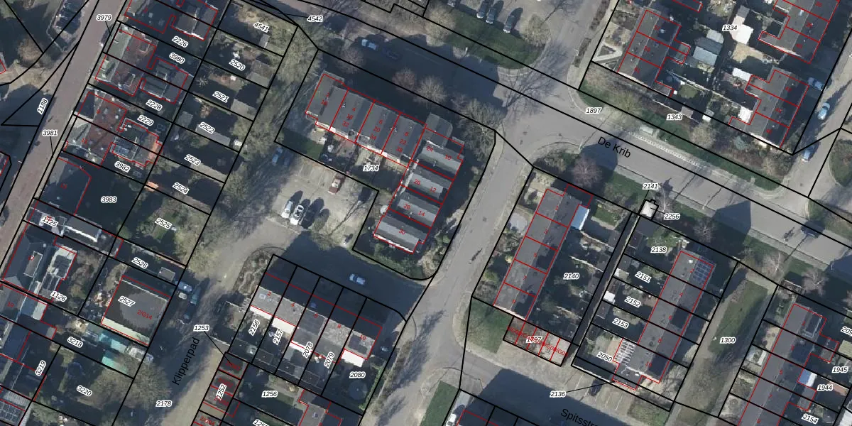 De Krib 14 is gelegen op kadastraal perceel LBH00C1734. Deze kadastrale aanduiding is uniek en wordt gebruikt door het Kadaster om eigendomsrechten en andere zakelijke rechten vast te leggen. Het perceel maakt onderdeel uit van de kadastrale gemeente Lobith en Spijk.