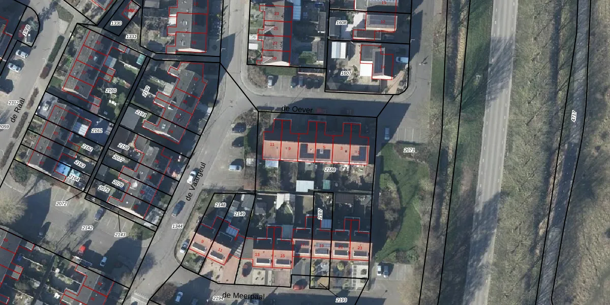Het perceel waarop de Oever 7 staat heeft een oppervlakte van 2001 m². Dit is een zeer groot perceel. De perceeloppervlakte wordt geregistreerd door het Kadaster. Gedetailleerde informatie over de maten van dit perceel kunt u vinden in het rapport Kadastrale kaart met maatvoering van de Oever 7.