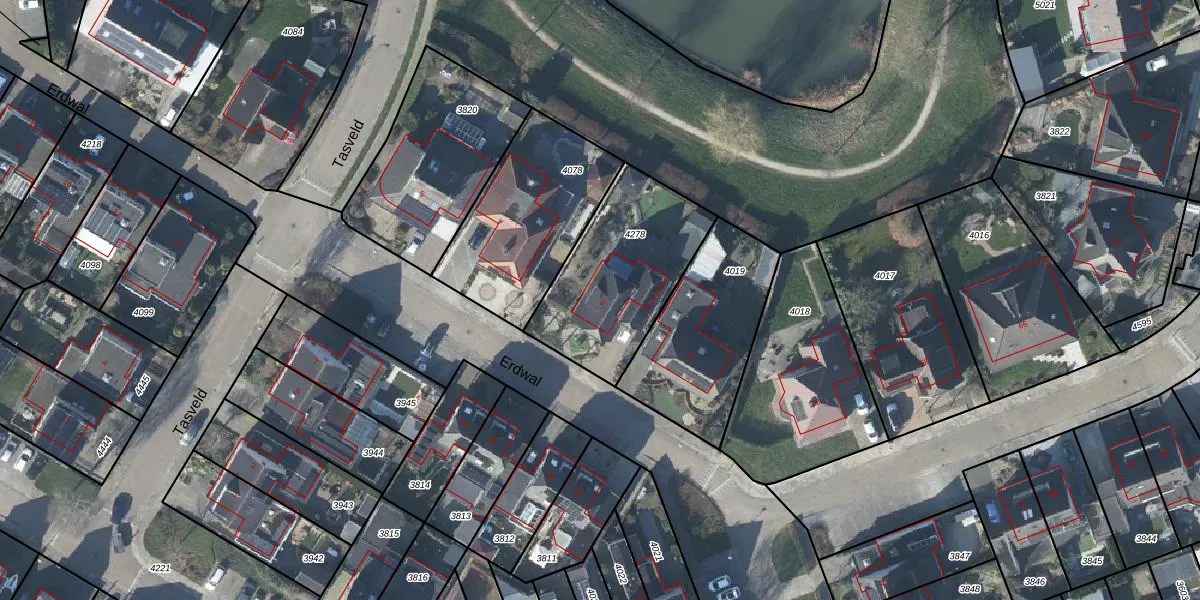 Gebruik de zoekbalk of klik op een perceel voor informatie over de adressen binnen dit perceel.