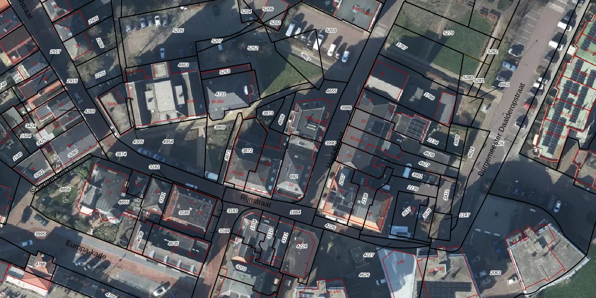 Het perceel waarop het adres ligt is LBH00-B-692. De afkorting 'LBH00' staat voor kadastrale gemeente Lobith en Spijk. Het perceel is kleiner dan gemiddeld in Lobith en Spijk. Het perceel is 240 m² groot, terwijl het gemiddelde ligt op 4603,31 m². Het kleinste perceel in de kadastrale gemeente is 0 m² groot. De grootste perceeloppervlakte is 98,2 ha. Er zijn 2 adressen aanwezig op het perceel. In de Basisregistratie Kadaster (BRK) werden de grenzen van het perceel geregistreerd op 10-01-2005.
