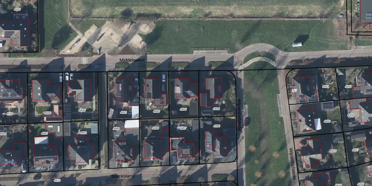 Het perceel waarop Middelweert 16 staat heeft een oppervlakte van 405 m². Dit is een groot perceel. De perceeloppervlakte wordt geregistreerd door het Kadaster. Gedetailleerde informatie over de maten van dit perceel kunt u vinden in het rapport Kadastrale kaart met maatvoering van Middelweert 16.