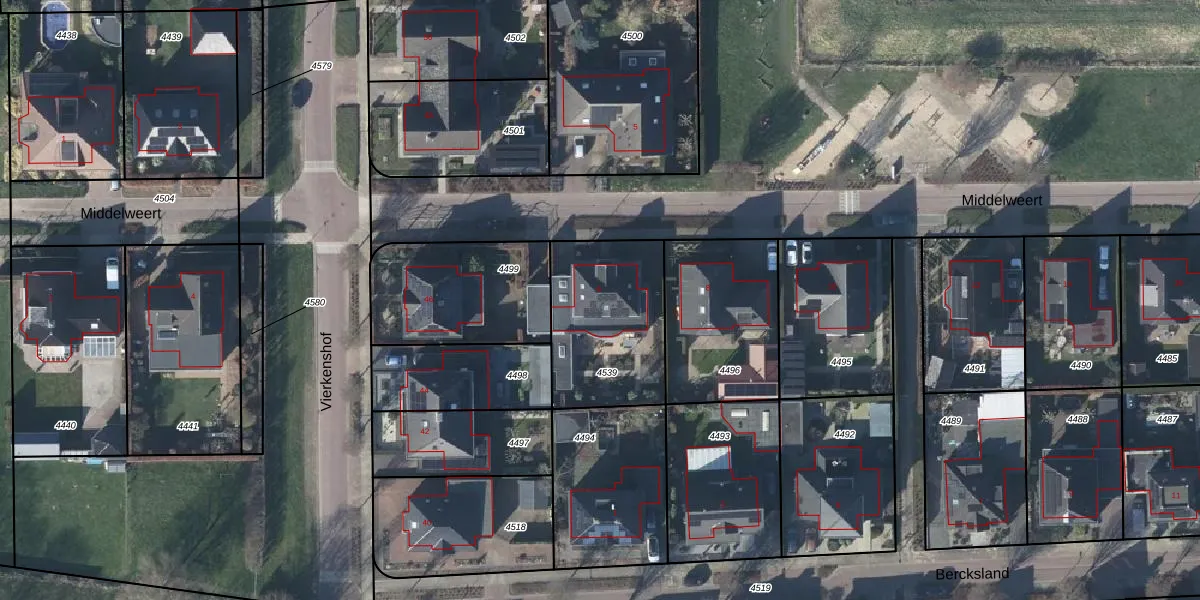 Het perceel waarop Middelweert 6 staat heeft een oppervlakte van 525 m². Dit is een groot perceel. De perceeloppervlakte wordt geregistreerd door het Kadaster. Gedetailleerde informatie over de maten van dit perceel kunt u vinden in het rapport Kadastrale kaart met maatvoering van Middelweert 6.