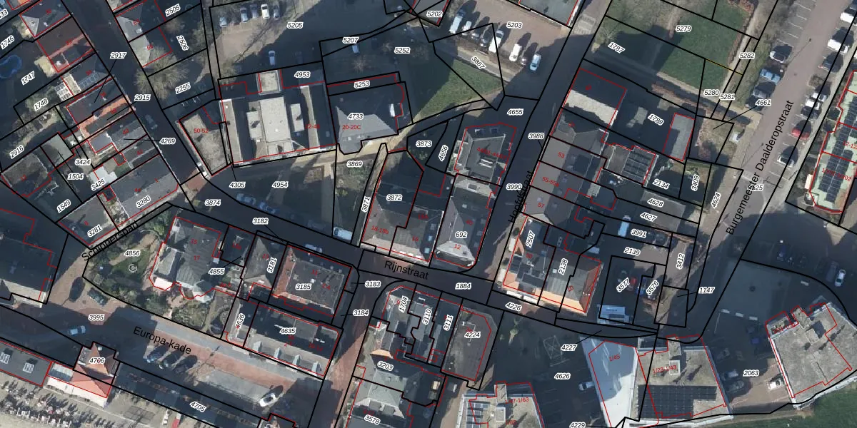 Rijnstraat 16-A is gelegen op kadastraal perceel LBH00B3873. Deze kadastrale aanduiding is uniek en wordt gebruikt door het Kadaster om eigendomsrechten en andere zakelijke rechten vast te leggen. Het perceel maakt onderdeel uit van de kadastrale gemeente Lobith en Spijk.