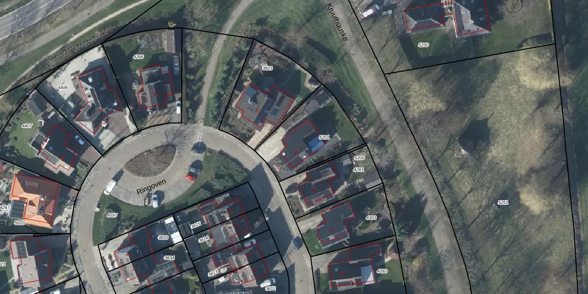 Het perceel waarop Ringoven 48 staat heeft een oppervlakte van 619 m². Dit is een groot perceel. De perceeloppervlakte wordt geregistreerd door het Kadaster. Gedetailleerde informatie over de maten van dit perceel kunt u vinden in het rapport Kadastrale kaart met maatvoering van Ringoven 48.