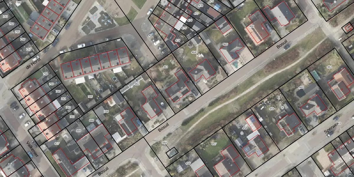 Het perceel waarop Bosuil 5 staat heeft een oppervlakte van 545 m². Dit is een groot perceel. De perceeloppervlakte wordt geregistreerd door het Kadaster. Gedetailleerde informatie over de maten van dit perceel kunt u vinden in het rapport Kadastrale kaart met maatvoering van Bosuil 5.