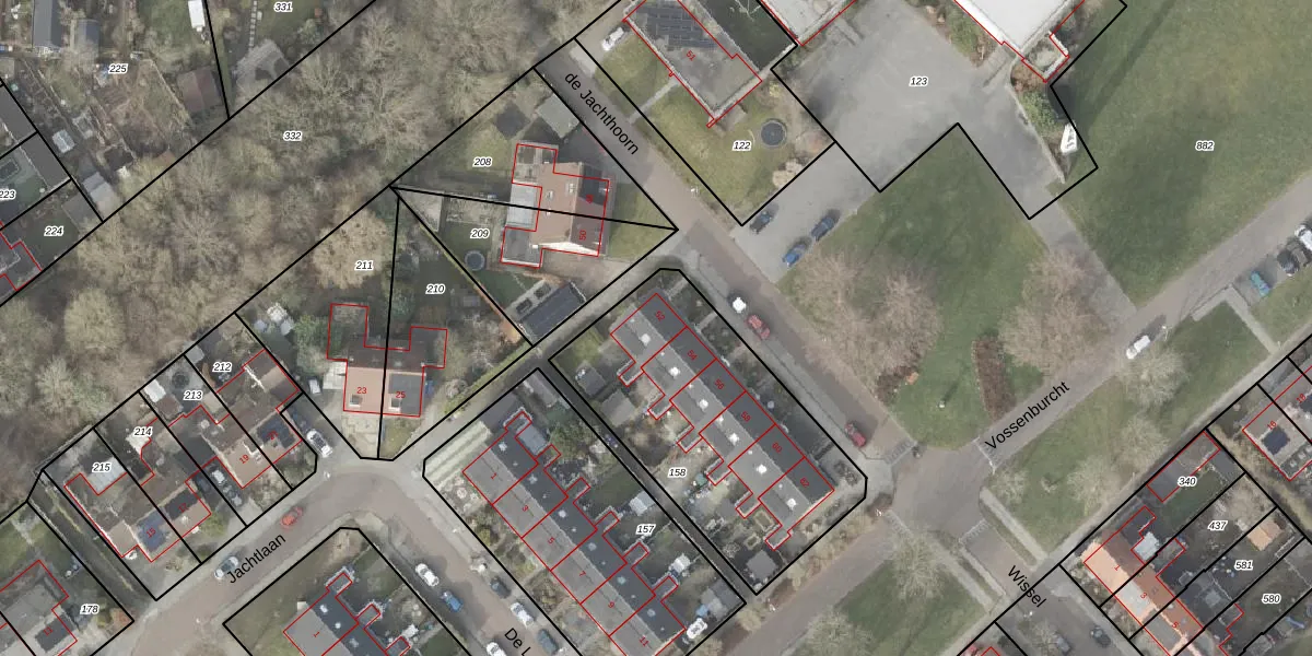 Het perceel waarop de Jachthoorn 52 staat heeft een oppervlakte van 1138 m². Dit is een zeer groot perceel. De perceeloppervlakte wordt geregistreerd door het Kadaster. Gedetailleerde informatie over de maten van dit perceel kunt u vinden in het rapport Kadastrale kaart met maatvoering van de Jachthoorn 52.