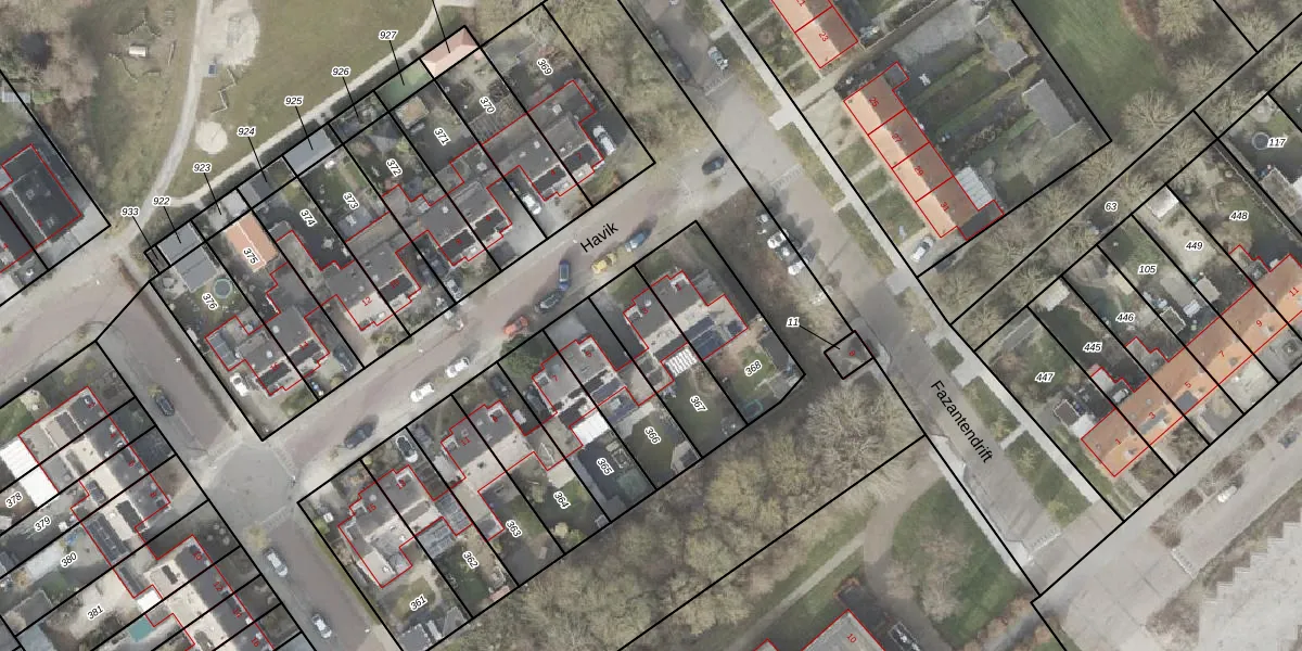 Gebruik de zoekbalk of klik op een perceel voor informatie over de adressen binnen dit perceel.