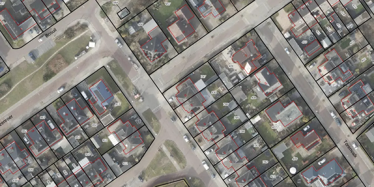Gebruik de zoekbalk of klik op een perceel voor informatie over de adressen binnen dit perceel.