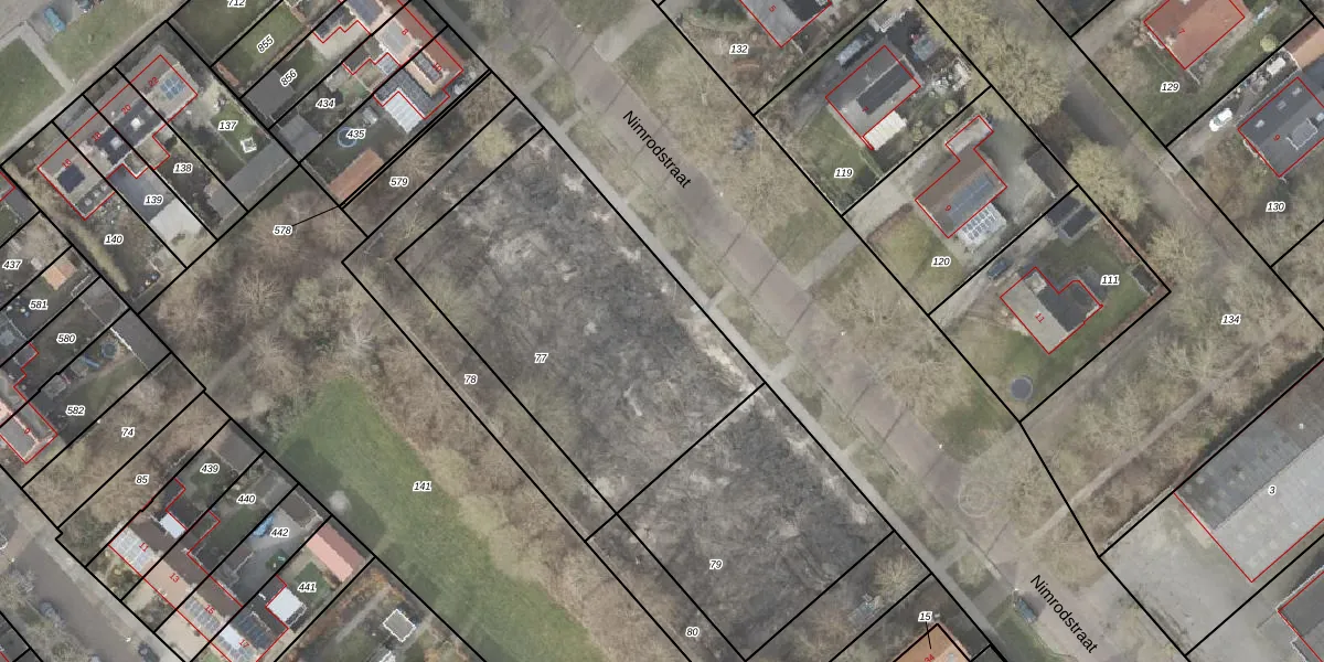 Het perceel waarop Nimrodstraat 22 staat heeft een oppervlakte van 1517 m². Dit is een zeer groot perceel. De perceeloppervlakte wordt geregistreerd door het Kadaster. Gedetailleerde informatie over de maten van dit perceel kunt u vinden in het rapport Kadastrale kaart met maatvoering van Nimrodstraat 22.
