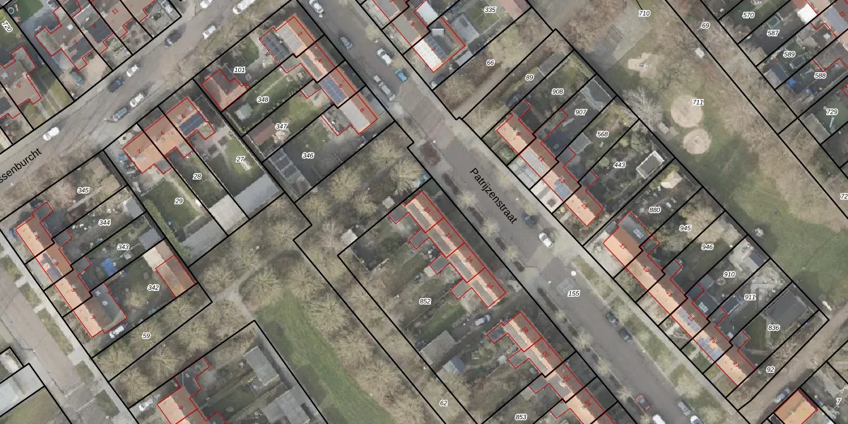 Het perceel waarop Patrijzenstraat 10 staat heeft een oppervlakte van 1530 m². Dit is een zeer groot perceel. De perceeloppervlakte wordt geregistreerd door het Kadaster. Gedetailleerde informatie over de maten van dit perceel kunt u vinden in het rapport Kadastrale kaart met maatvoering van Patrijzenstraat 10.