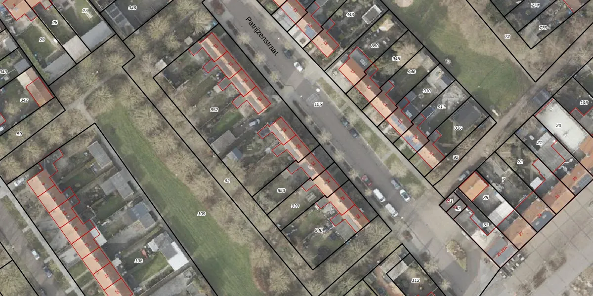Het perceel waarop Patrijzenstraat 20 staat heeft een oppervlakte van 1530 m². Dit is een zeer groot perceel. De perceeloppervlakte wordt geregistreerd door het Kadaster. Gedetailleerde informatie over de maten van dit perceel kunt u vinden in het rapport Kadastrale kaart met maatvoering van Patrijzenstraat 20.