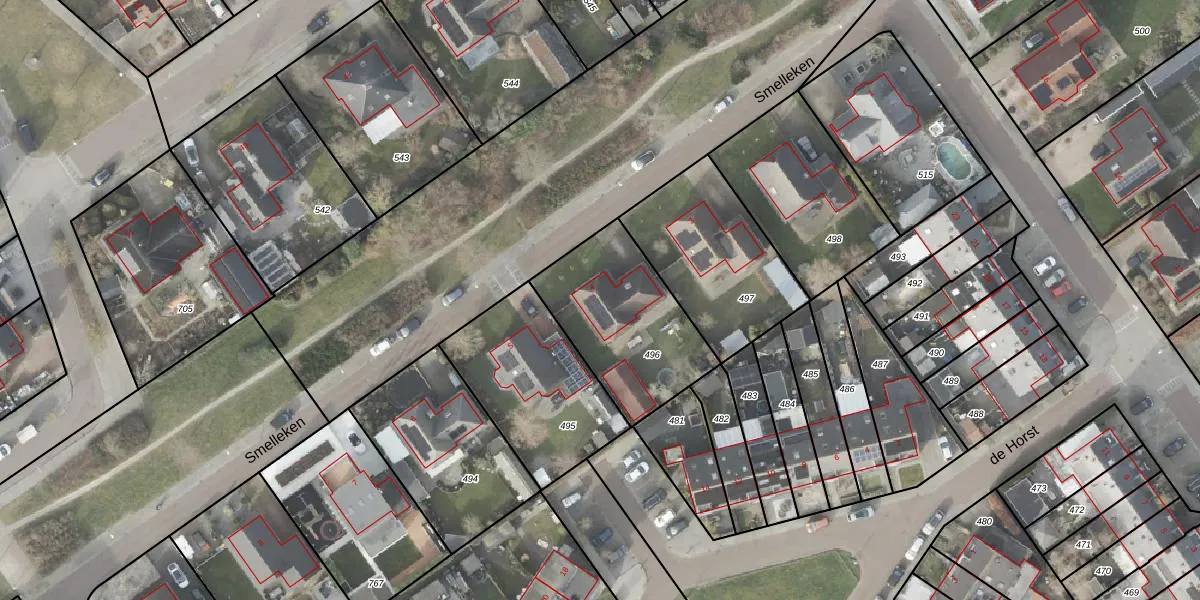 Het perceel waarop Smelleken 4 staat heeft een oppervlakte van 547 m². Dit is een groot perceel. De perceeloppervlakte wordt geregistreerd door het Kadaster. Gedetailleerde informatie over de maten van dit perceel kunt u vinden in het rapport Kadastrale kaart met maatvoering van Smelleken 4.