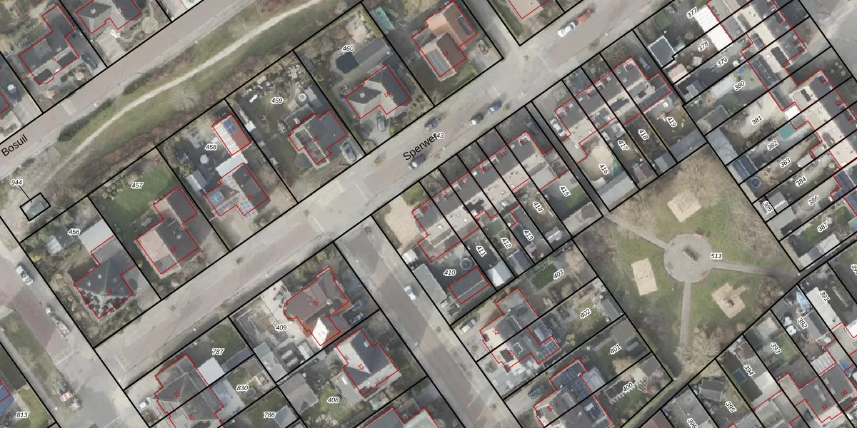 Het perceel waarop Sperwer 19 staat heeft een oppervlakte van 435 m². Dit is een groot perceel. De perceeloppervlakte wordt geregistreerd door het Kadaster. Gedetailleerde informatie over de maten van dit perceel kunt u vinden in het rapport Kadastrale kaart met maatvoering van Sperwer 19.