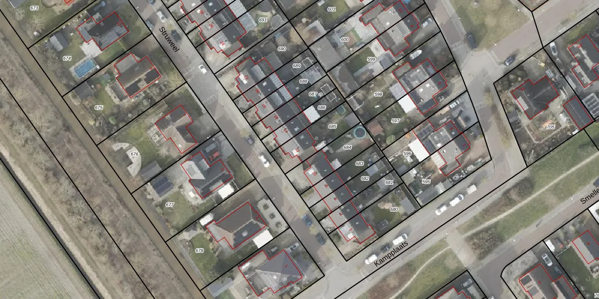 Gebruik de zoekbalk of klik op een perceel voor informatie over de adressen binnen dit perceel.