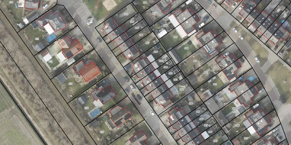 Het perceel waarop Struweel 32 staat heeft een oppervlakte van 167 m². Dit is een middelgroot perceel. De perceeloppervlakte wordt geregistreerd door het Kadaster. Gedetailleerde informatie over de maten van dit perceel kunt u vinden in het rapport Kadastrale kaart met maatvoering van Struweel 32.