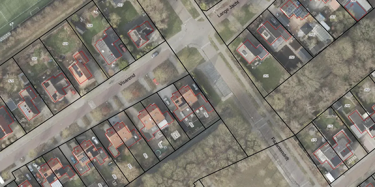 Het perceel waarop Visarend 1 staat heeft een oppervlakte van 292 m². Dit is een middelgroot perceel. De perceeloppervlakte wordt geregistreerd door het Kadaster. Gedetailleerde informatie over de maten van dit perceel kunt u vinden in het rapport Kadastrale kaart met maatvoering van Visarend 1.