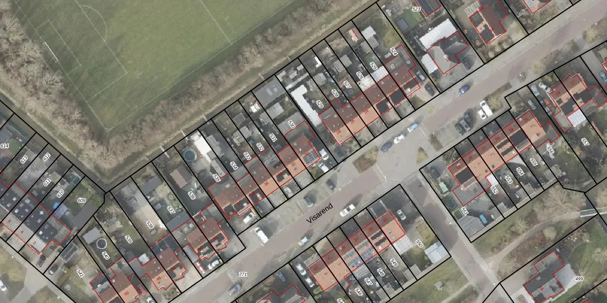 Het perceel waarop Visarend 30 staat heeft een oppervlakte van 344 m². Dit is een groot perceel. De perceeloppervlakte wordt geregistreerd door het Kadaster. Gedetailleerde informatie over de maten van dit perceel kunt u vinden in het rapport Kadastrale kaart met maatvoering van Visarend 30.