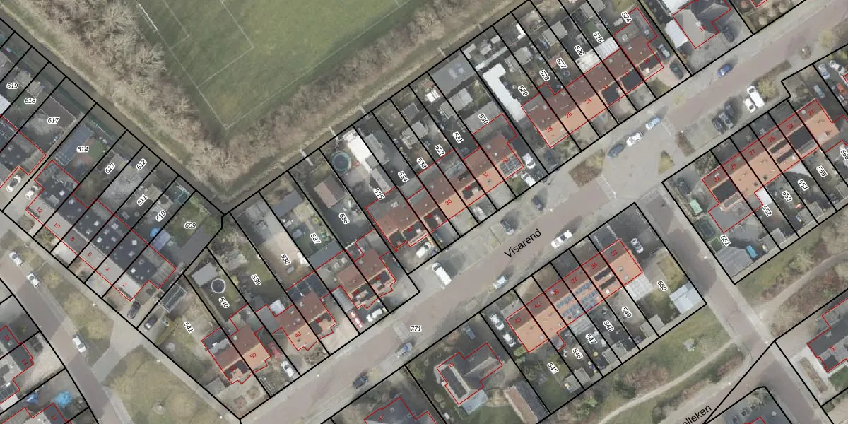 Het perceel waarop Visarend 38 staat heeft een oppervlakte van 197 m². Dit is een middelgroot perceel. De perceeloppervlakte wordt geregistreerd door het Kadaster. Gedetailleerde informatie over de maten van dit perceel kunt u vinden in het rapport Kadastrale kaart met maatvoering van Visarend 38.