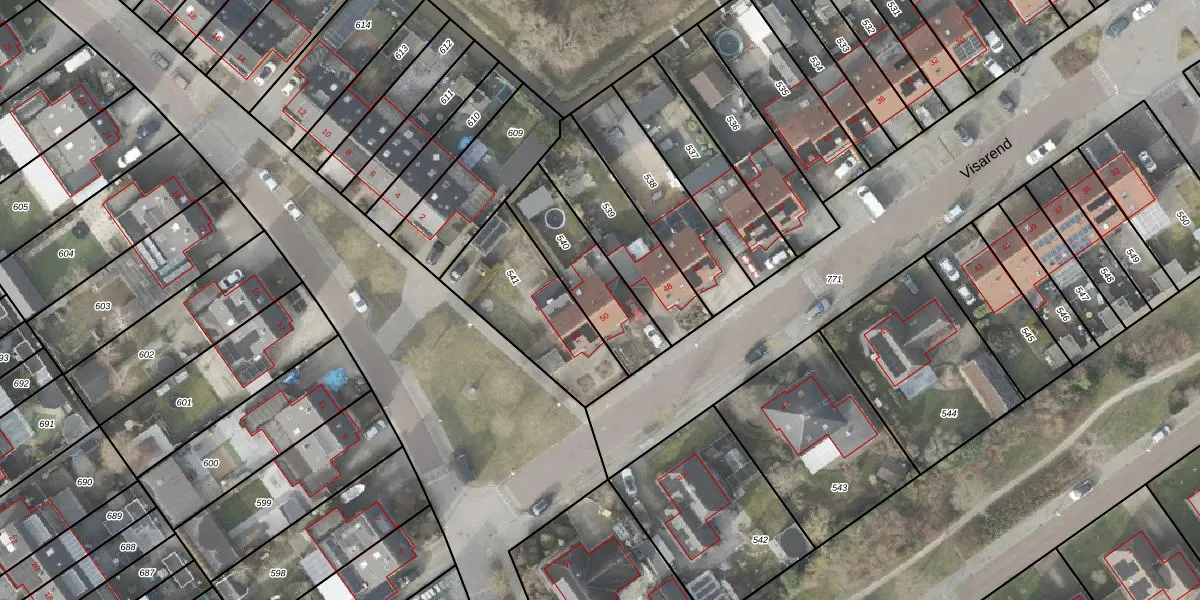 Het perceel waarop Visarend 50 staat heeft een oppervlakte van 312 m². Dit is een groot perceel. De perceeloppervlakte wordt geregistreerd door het Kadaster. Gedetailleerde informatie over de maten van dit perceel kunt u vinden in het rapport Kadastrale kaart met maatvoering van Visarend 50.
