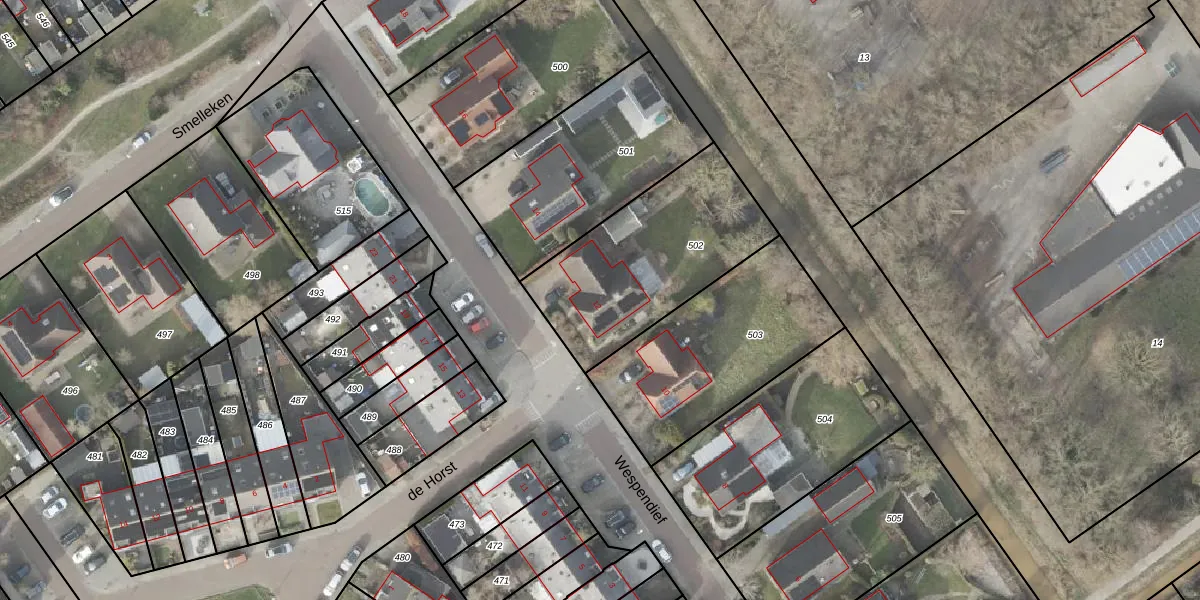 Het perceel waarop Wespendief 12 staat heeft een oppervlakte van 754 m². Dit is een groot perceel. De perceeloppervlakte wordt geregistreerd door het Kadaster. Gedetailleerde informatie over de maten van dit perceel kunt u vinden in het rapport Kadastrale kaart met maatvoering van Wespendief 12.