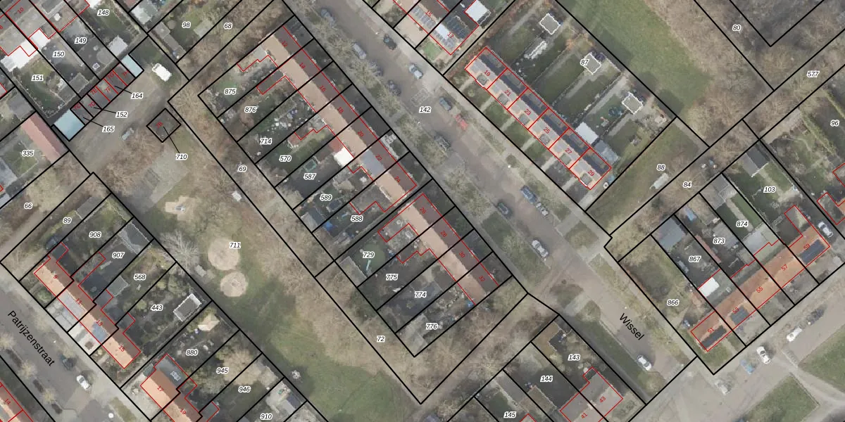 Gebruik de zoekbalk of klik op een perceel voor informatie over de adressen binnen dit perceel.