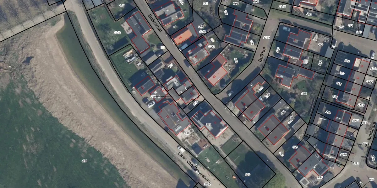 Het perceel waarop Bulkstraat 13 staat heeft een oppervlakte van 102 m². Dit is een middelgroot perceel. De perceeloppervlakte wordt geregistreerd door het Kadaster. Gedetailleerde informatie over de maten van dit perceel kunt u vinden in het rapport Kadastrale kaart met maatvoering van Bulkstraat 13.