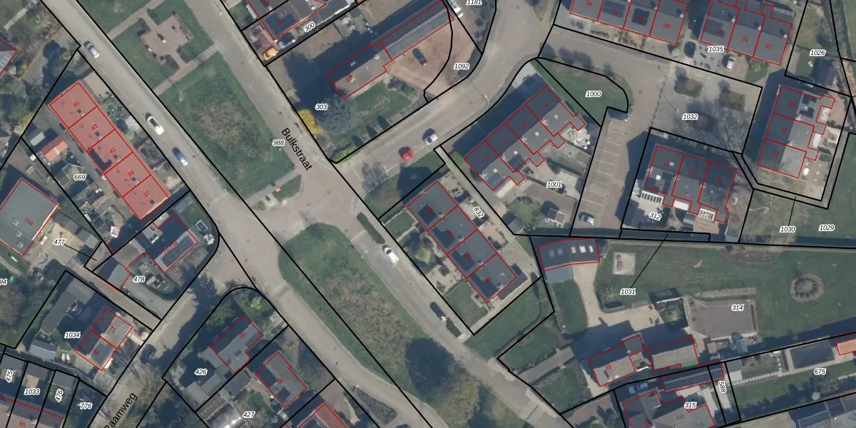 Het perceel waarop Bulkstraat 36 staat heeft een oppervlakte van 797 m². Dit is een groot perceel. De perceeloppervlakte wordt geregistreerd door het Kadaster. Gedetailleerde informatie over de maten van dit perceel kunt u vinden in het rapport Kadastrale kaart met maatvoering van Bulkstraat 36.