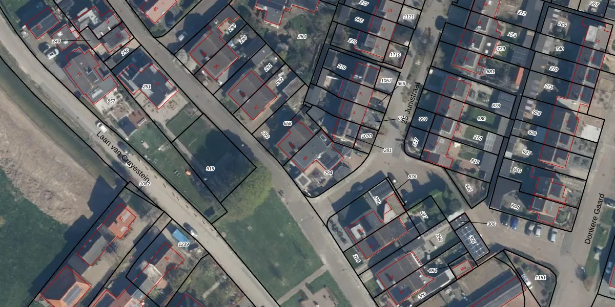 Gebruik de zoekbalk of klik op een perceel voor informatie over de adressen binnen dit perceel.