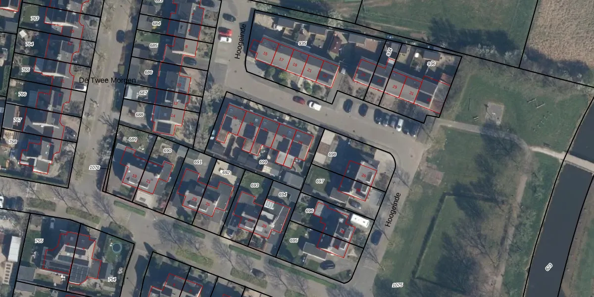 Hoogeinde 24 is gelegen op kadastraal perceel GDM00K699. Deze kadastrale aanduiding is uniek en wordt gebruikt door het Kadaster om eigendomsrechten en andere zakelijke rechten vast te leggen. Het perceel maakt onderdeel uit van de kadastrale gemeente Geldermalsen.
