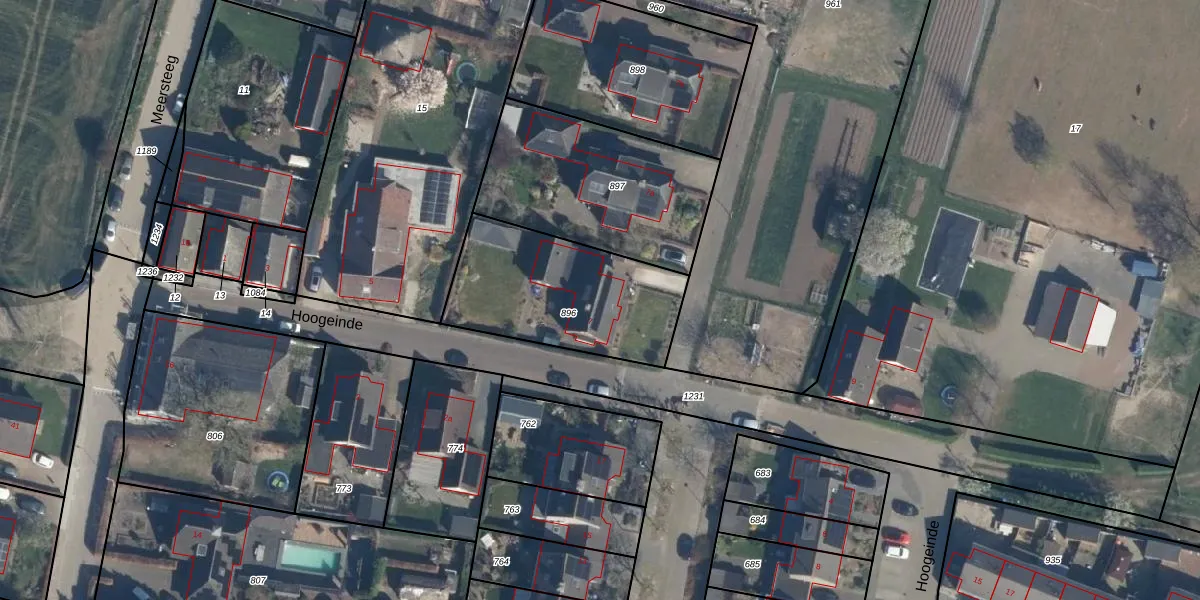 Gebruik de zoekbalk of klik op een perceel voor informatie over de adressen binnen dit perceel.