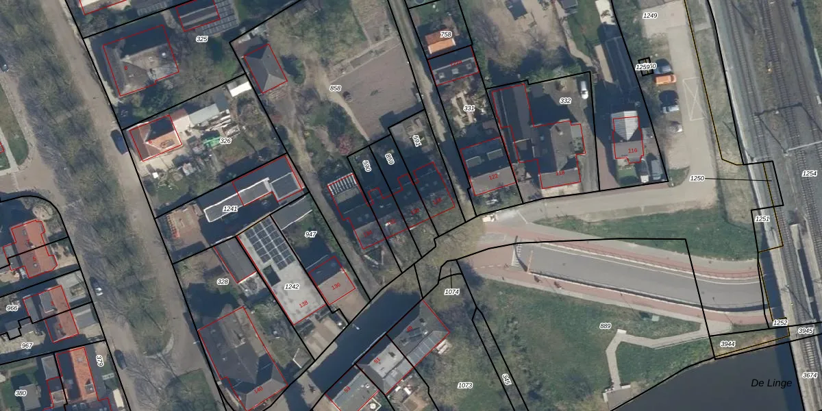 Het perceel waarop Lingedijk 130 staat heeft een oppervlakte van 173 m². Dit is een middelgroot perceel. De perceeloppervlakte wordt geregistreerd door het Kadaster. Gedetailleerde informatie over de maten van dit perceel kunt u vinden in het rapport Kadastrale kaart met maatvoering van Lingedijk 130.