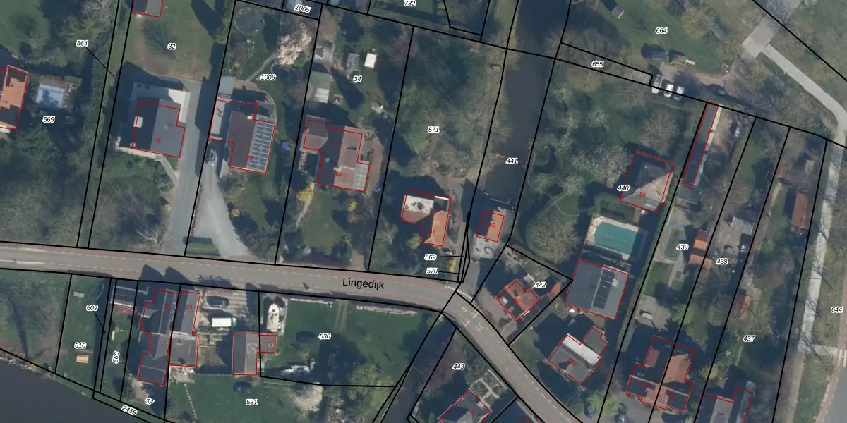 Het perceel waarop Lingedijk 62 staat heeft een oppervlakte van 1250 m². Dit is een zeer groot perceel. De perceeloppervlakte wordt geregistreerd door het Kadaster. Gedetailleerde informatie over de maten van dit perceel kunt u vinden in het rapport Kadastrale kaart met maatvoering van Lingedijk 62.