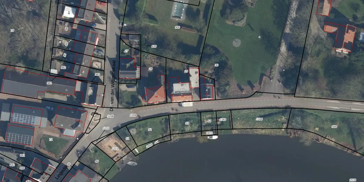Het perceel waarop Lingedijk 84 staat heeft een oppervlakte van 400 m². Dit is een groot perceel. De perceeloppervlakte wordt geregistreerd door het Kadaster. Gedetailleerde informatie over de maten van dit perceel kunt u vinden in het rapport Kadastrale kaart met maatvoering van Lingedijk 84.