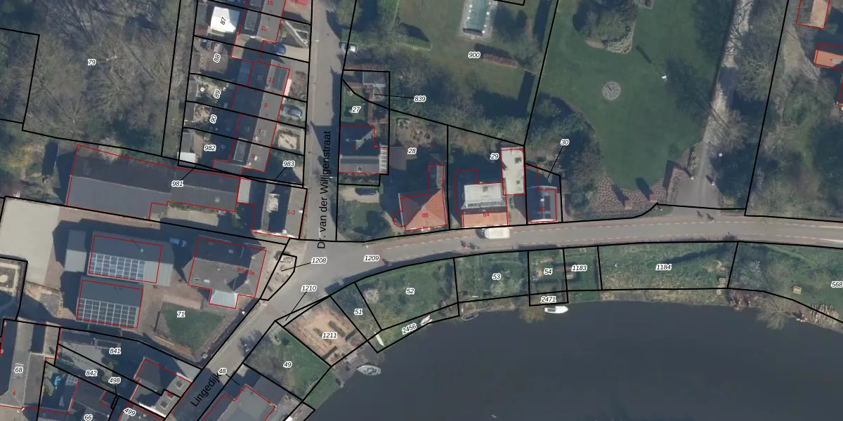Het perceel waarop Lingedijk 86 staat heeft een oppervlakte van 548 m². Dit is een groot perceel. De perceeloppervlakte wordt geregistreerd door het Kadaster. Gedetailleerde informatie over de maten van dit perceel kunt u vinden in het rapport Kadastrale kaart met maatvoering van Lingedijk 86.
