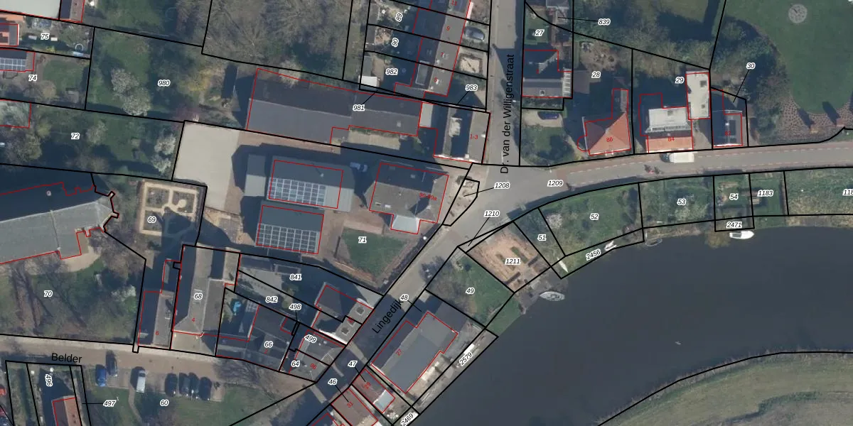 Het perceel waarop Lingedijk 90-a staat heeft een oppervlakte van 1729 m². Dit is een zeer groot perceel. De perceeloppervlakte wordt geregistreerd door het Kadaster. Gedetailleerde informatie over de maten van dit perceel kunt u vinden in het rapport Kadastrale kaart met maatvoering van Lingedijk 90-a.