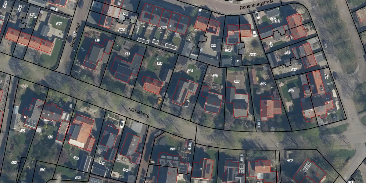 Middelweg 12 is gelegen op kadastraal perceel GDM00K384. Deze kadastrale aanduiding is uniek en wordt gebruikt door het Kadaster om eigendomsrechten en andere zakelijke rechten vast te leggen. Het perceel maakt onderdeel uit van de kadastrale gemeente Geldermalsen.