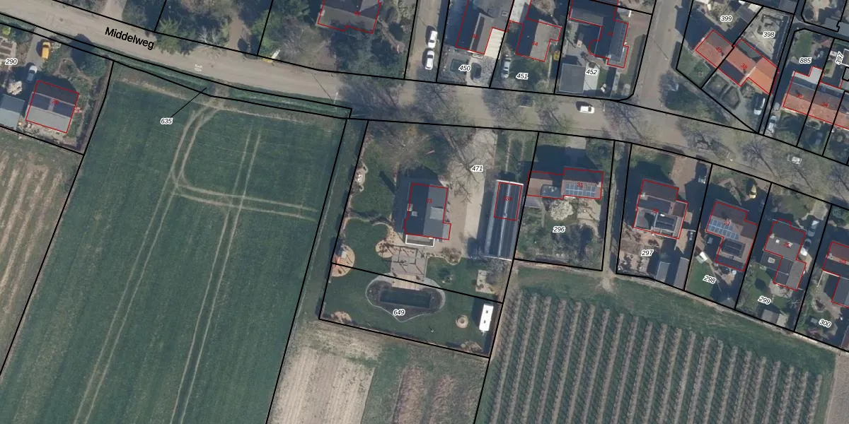 Middelweg 33 is gelegen op kadastraal perceel GDM00I471. Deze kadastrale aanduiding is uniek en wordt gebruikt door het Kadaster om eigendomsrechten en andere zakelijke rechten vast te leggen. Het perceel maakt onderdeel uit van de kadastrale gemeente Geldermalsen.