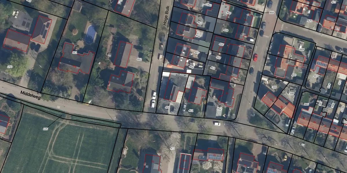 Middelweg 46 is gelegen op kadastraal perceel GDM00K450. Deze kadastrale aanduiding is uniek en wordt gebruikt door het Kadaster om eigendomsrechten en andere zakelijke rechten vast te leggen. Het perceel maakt onderdeel uit van de kadastrale gemeente Geldermalsen.