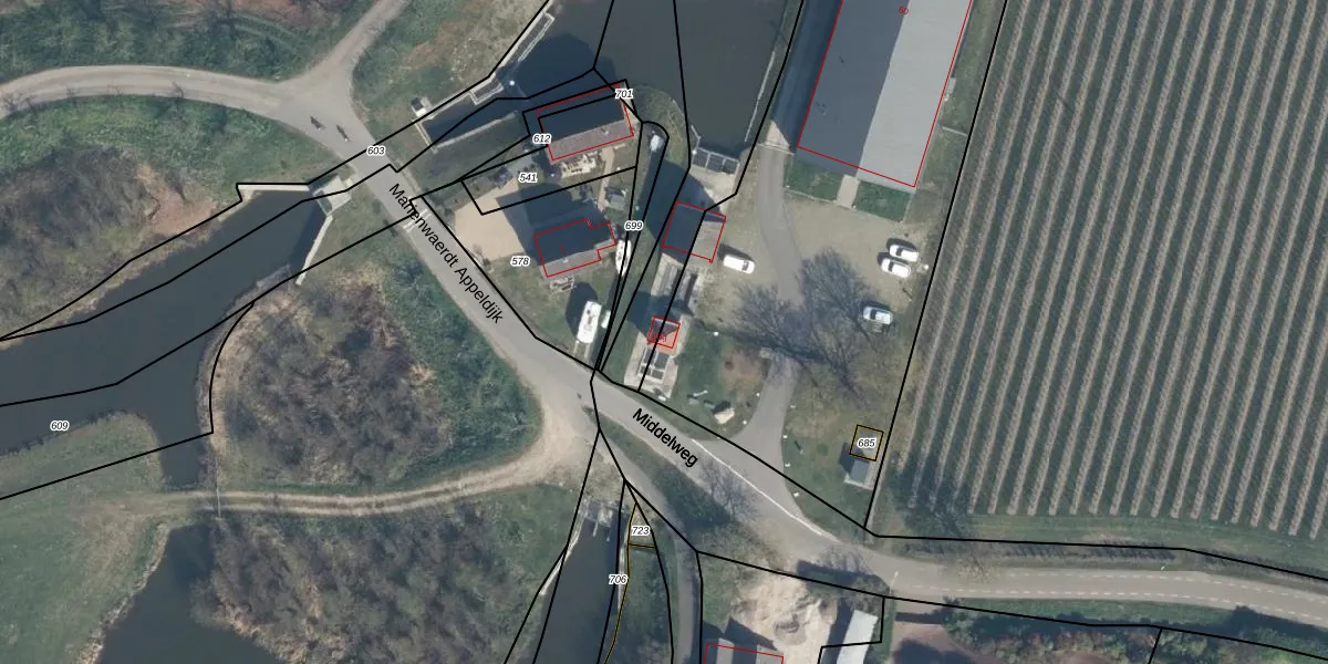 Middelweg 60-g is gelegen op kadastraal perceel GDM00I684. Deze kadastrale aanduiding is uniek en wordt gebruikt door het Kadaster om eigendomsrechten en andere zakelijke rechten vast te leggen. Het perceel maakt onderdeel uit van de kadastrale gemeente Geldermalsen.
