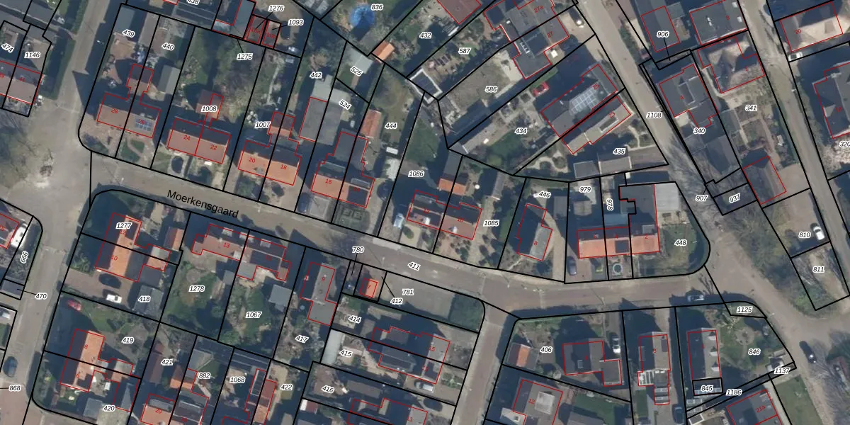 Het perceel waarop Moerkensgaard 12 staat heeft een oppervlakte van 401 m². Dit is een groot perceel. De perceeloppervlakte wordt geregistreerd door het Kadaster. Gedetailleerde informatie over de maten van dit perceel kunt u vinden in het rapport Kadastrale kaart met maatvoering van Moerkensgaard 12.