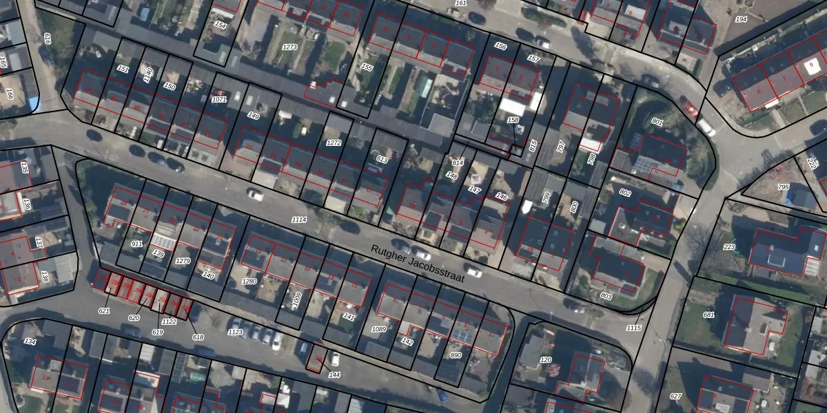 Het perceel waarop Rutgher Jacobsstraat 10 staat heeft een oppervlakte van 3173 m². Dit is een zeer groot perceel. De perceeloppervlakte wordt geregistreerd door het Kadaster. Gedetailleerde informatie over de maten van dit perceel kunt u vinden in het rapport Kadastrale kaart met maatvoering van Rutgher Jacobsstraat 10.