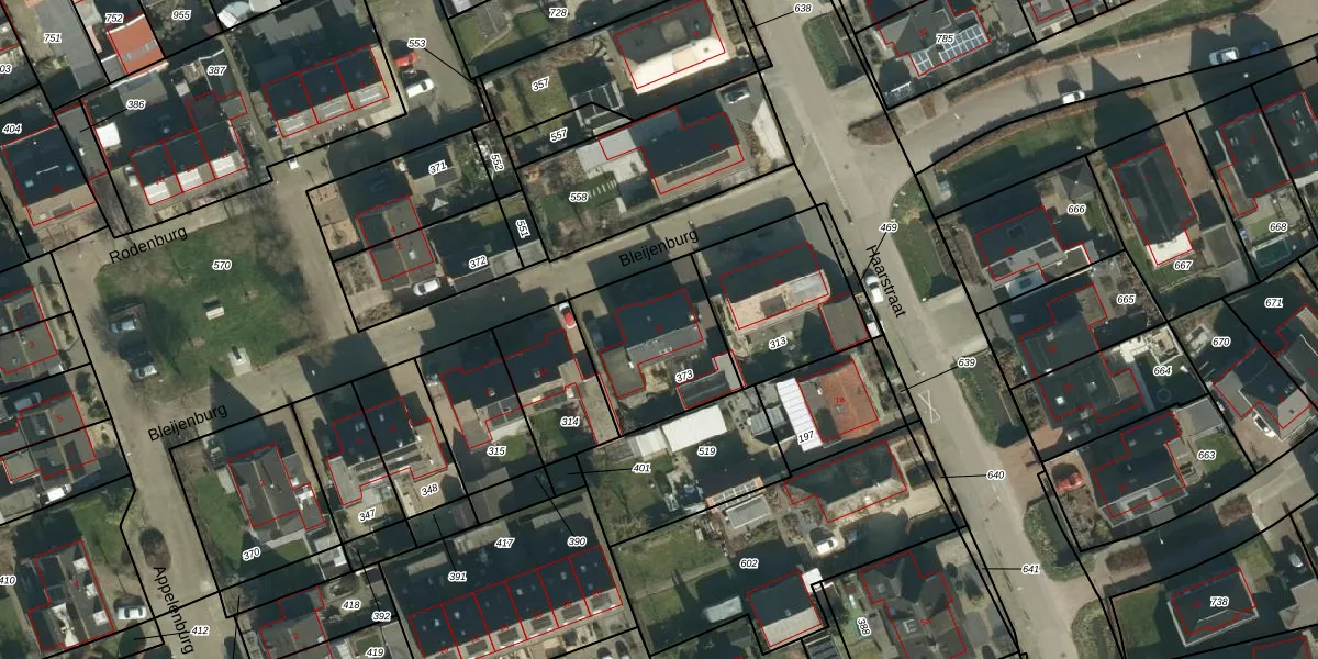 Het perceel waarop Bleijenburg 12 staat heeft een oppervlakte van 443 m². Dit is een groot perceel. De perceeloppervlakte wordt geregistreerd door het Kadaster. Gedetailleerde informatie over de maten van dit perceel kunt u vinden in het rapport Kadastrale kaart met maatvoering van Bleijenburg 12.